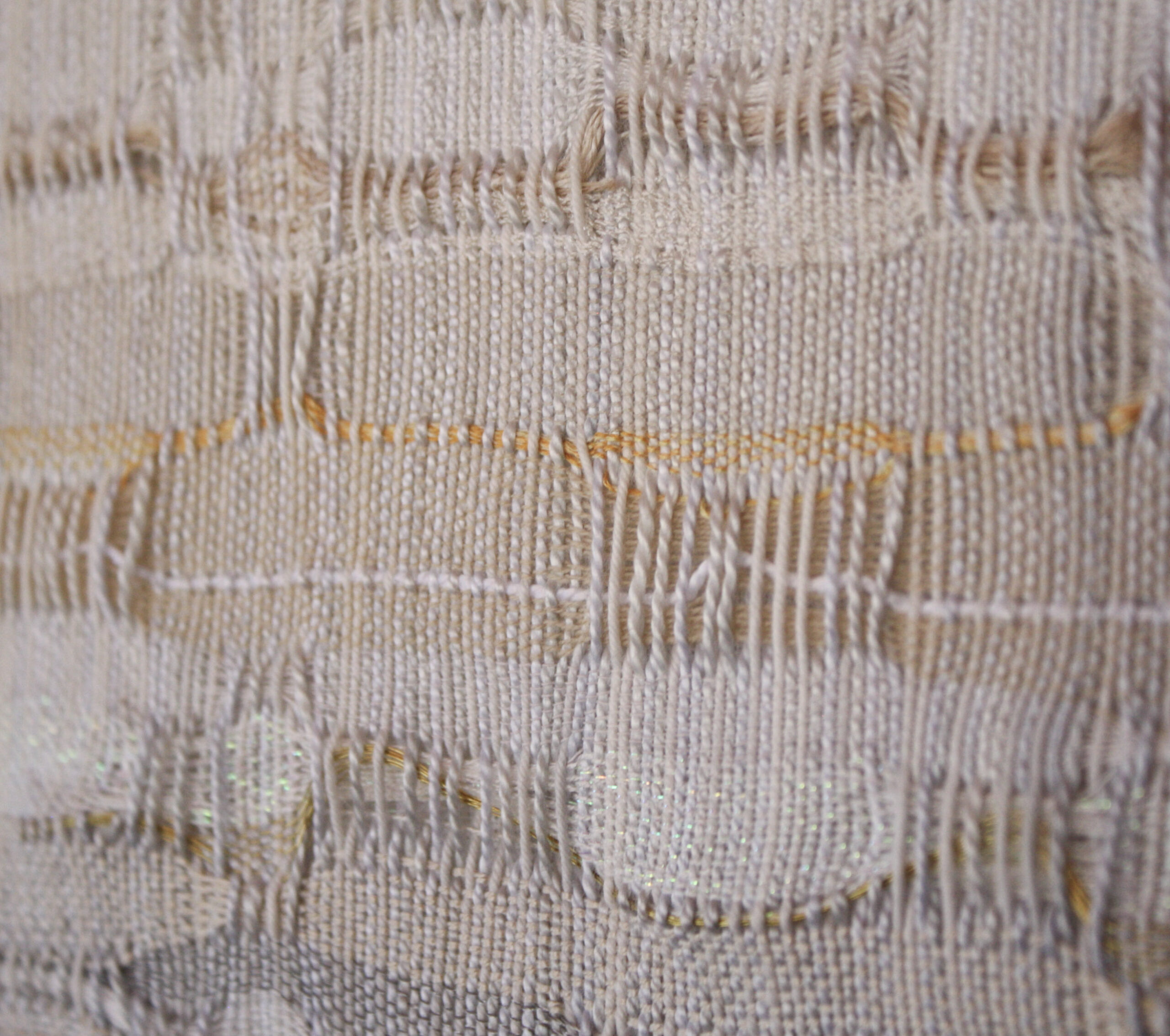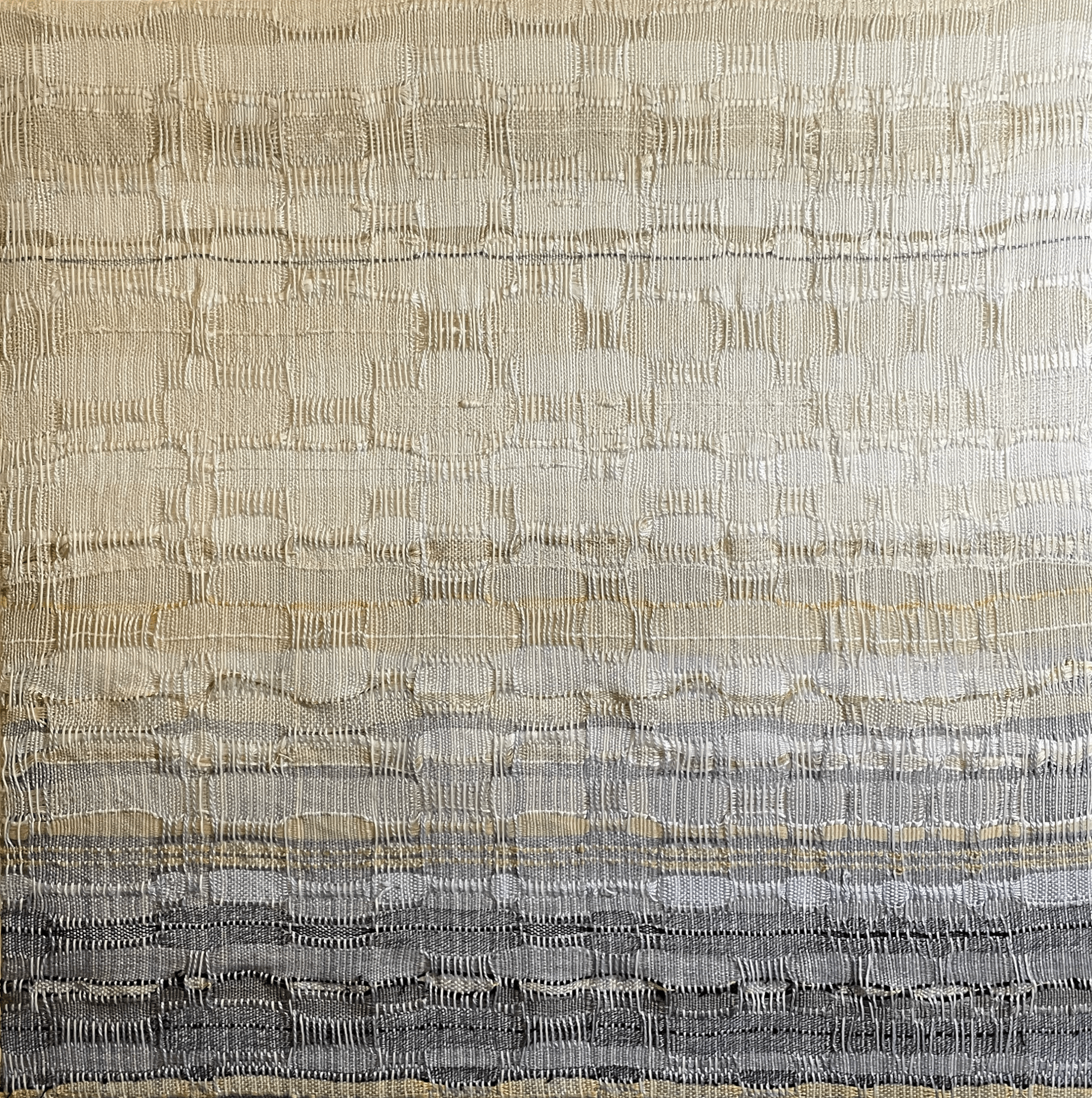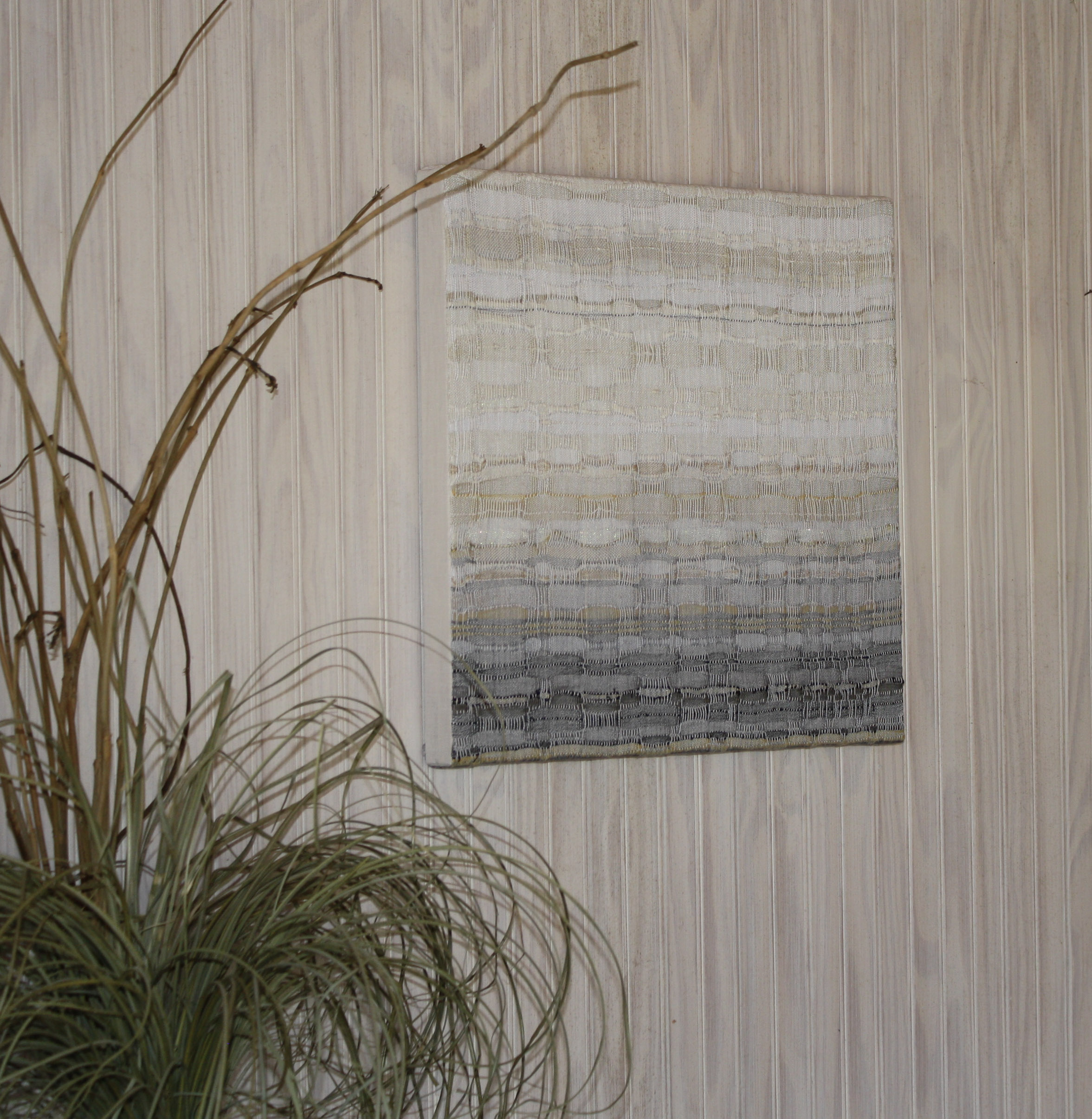 One of four in a series on clouds. Hand-painted warp, handwoven art. Mounted on a linen-covered frame, ready to hang.